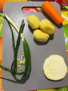 - Am spălat legumele și le-am pregătit pentru tăiat.