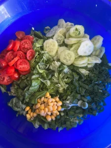 Salata de cruditati este o variantă ușoară și potrivită atunci când vrei să mănânci mai dietetic. Eu am făcut această rețetă în perioadele când țineam dietă și aveam nevoie de ceva rapid, sățios și fără prea mult efort. Combinația dintre salata de cruditati și naut crocant la cuptor este foarte bună, pentru că adaugă textură și te satură mai bine.
